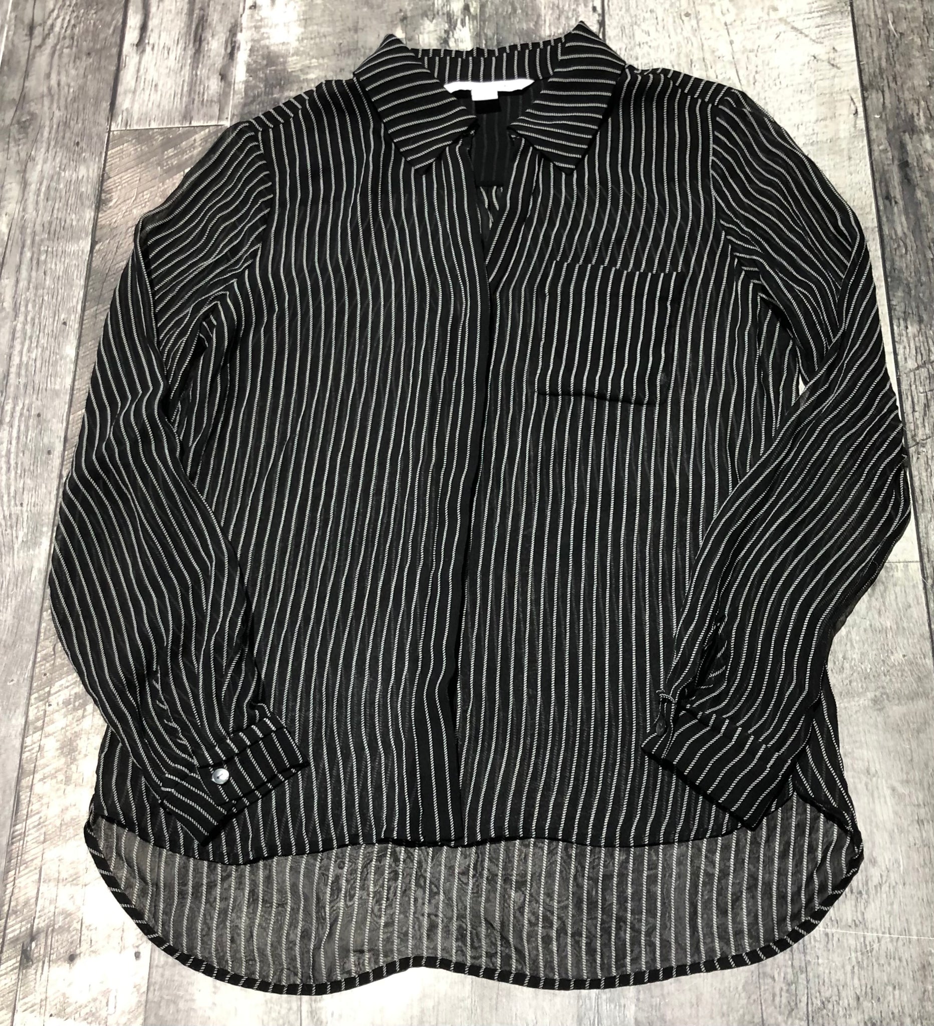 Diane von Furstenberg black/white sheer button up blouse - Hers size 6