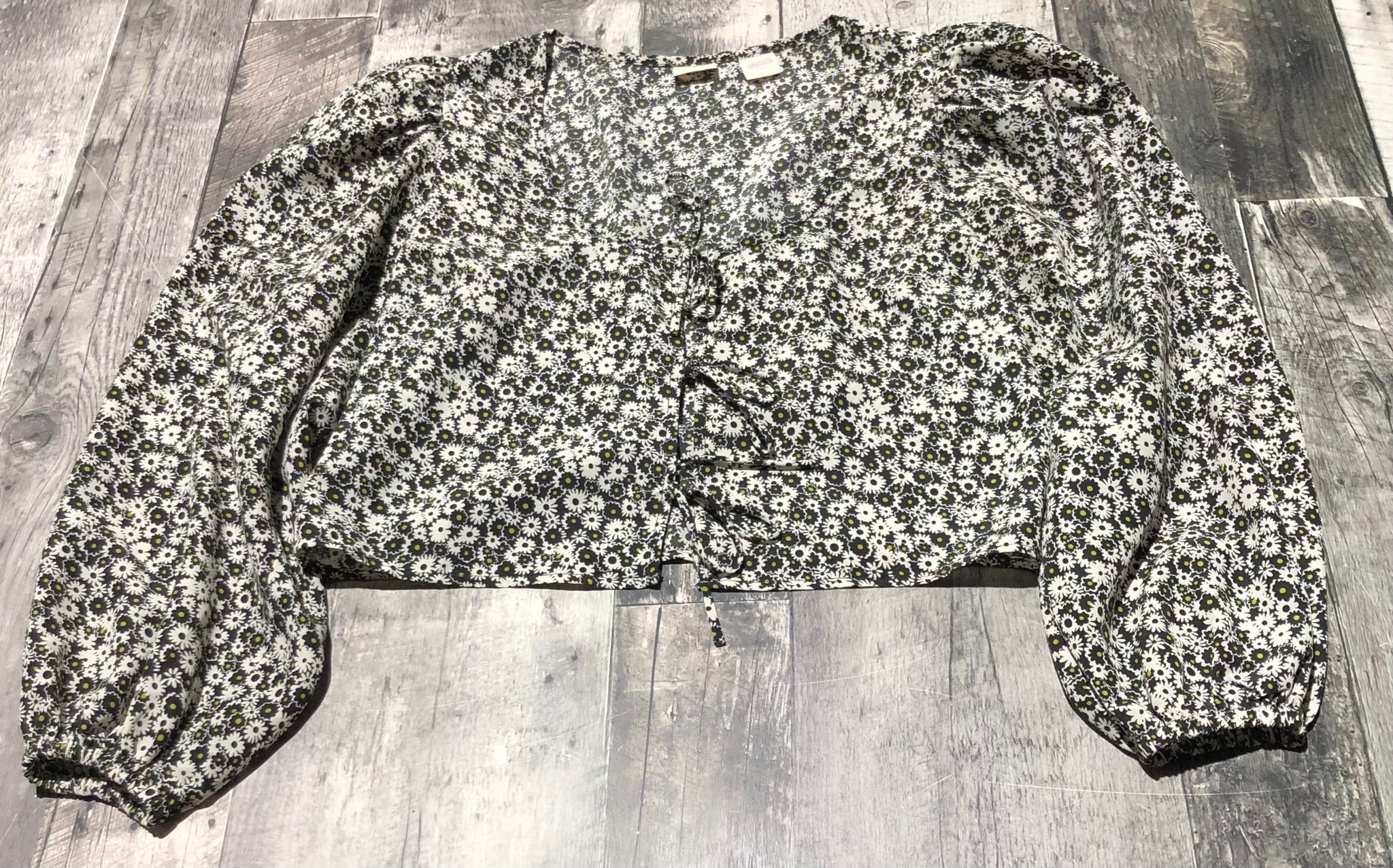 Levis black/white/green cropped tie up blouse - Hers size M