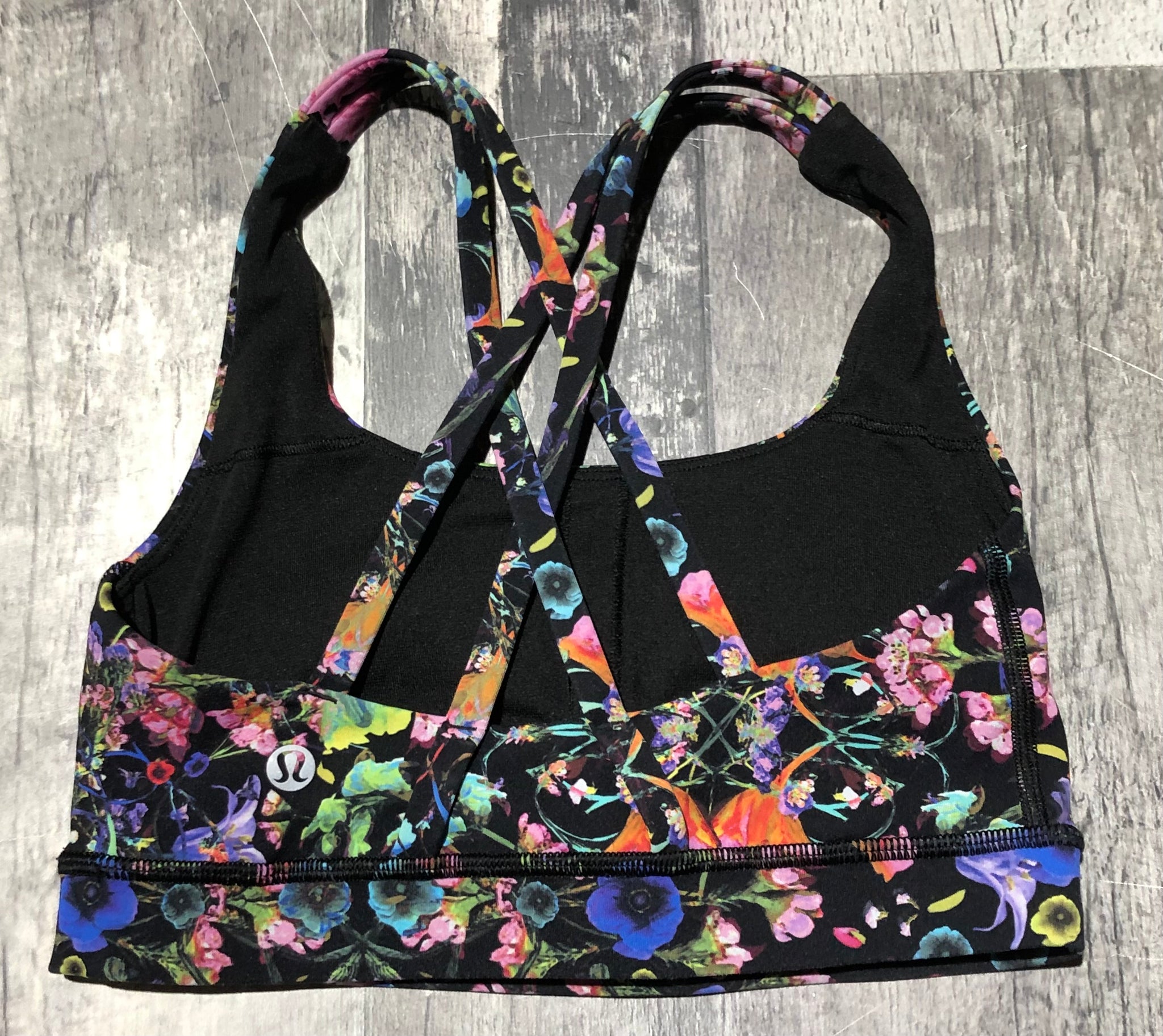 lululemon black/multi coloured sports bra - Hers size 2